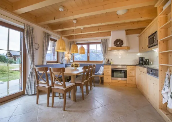 Das ländliche, freistehende Chalet liegt auf 1700 Metern Höhe auf dem Silberleiten in Hochkrimml. In diesem Domizil lässt sich ein herrlicher Urlaub mit einer Gruppe von zehn Personen erleben. In der gemütlichen Sitzecke können Sie sich bequem ausruhen. Der Esstisch lädt zum Abendessen ein und in der komplett ausgestatteten Küche lassen sich köstliche Mahlzeiten zubereiten. Vom Wohnzimmer gelangen Sie auf die große Terrasse. Dort haben Sie einen fantastischen Blick auf Königsleiten und die schönen Berge der Umgebung. In den vier Schlafzimmern werden Sie eine wunderbare Nachtruhe haben. Es gibt drei Zimmer mit Doppelbetten und ein Schlafzimmer mit zwei Etagenbetten. Nach einem sportlichen Tag in den Bergen können Sie sich im Badezimmer im warmen Bad entspannen. In der nahe gelegenen Parkgarage ist Platz für zwei Autos.