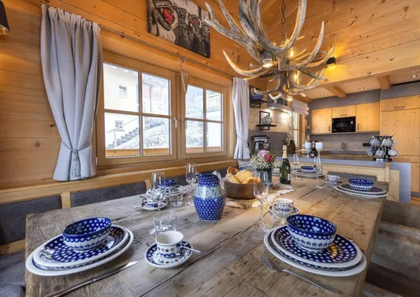 Das sehr komfortabel eingerichtete, freistehende Chalet Mooshütte liegt am Südhang des Bergdorfes Königsleiten. Das Ferienhaus bietet Platz für 12 Personen. In der gemütlichen Sitzecke können Sie genüsslich am Kamin entspannen. Die österreichische Essecke lädt dazu ein, auch nach dem Essen gemeinsam sitzen zu bleiben und zu plaudern. Die Küche ist komplett ausgestattet – somit ist alles vorhanden, um eine leckere Mahlzeit zuzubereiten. Vom Wohn- und Esszimmer aus haben Sie einen tollen Blick auf die bergige Umgebung mit ihren zahlreichen Bäumen. Die Schlafplätze sind in fünf Schlafzimmer aufgeteilt. Vier der Zimmer haben ein Doppelbett, außerdem gibt es ein weiteres Schlafzimmer mit zwei Einzelbetten sowie zwei Einzelbetten, welche platzsparend darunter geschoben werden können. Es handelt sich um ein stimmungsvolles und geräumiges Chalet, in dem Sie einen komfortablen Urlaub mit der Familie oder mit Freunden verbringen können! Der gemütliche Dorfkern von Königsleiten mit urigen Restaurants und Bars befindet sich nur wenige Gehminuten vom Chalet entfernt.