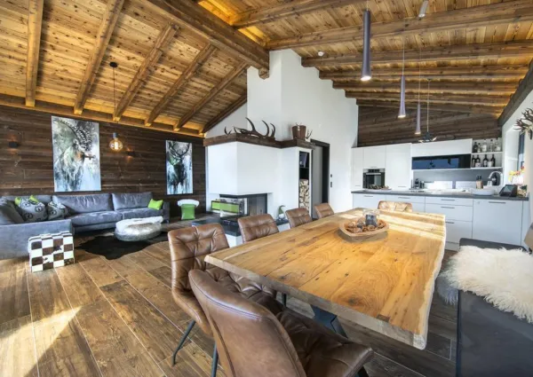 Nationalpark chalet Kuhhaut is één van de vrijstaande vakantiewoningen van het chaletdorp Nationalpark Chalets in Neukirchen am Großvenediger. In dit luxe verblijf kun je met 8 personen genieten van een vakantie waarin het je aan niks ontbreekt. De vakantiewoning is luxe en stijlvol ingericht en van alle gemakken voorzien. De ruimtelijke woonkamer bestaat uit een comfortabele zithoek, open haard, woonkeuken en riante eethoek. Vanuit de woonkamer heb je toegang tot het balkon met grandioos uitzicht op de omliggende bergen. Houd je van ontspanning tijdens je vakantie? In de wellnessruimte kun je ontspannen in de zeer grote Finse sauna, bijkomen op de ligstoelen en heb je toegang tot het balkon. De slaapplaatsen zijn verdeeld over vier slaapkamers met 2-persoonsbed, waarvan er drie een eigen badkamer hebben. Kortom, aan luxe geen gebrek in chalet Kuhhaut.