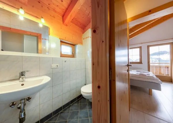 Het 3-kamer appartement (Top 1) op de eerste en tweede verdieping biedt plaats aan 6 tot 8 personen. In de sfeervolle woonkamer met zithoek en (slaap)bank kun je heerlijk relaxen na een actieve dag buiten. En in de keuken bereidt je de lekkerste maaltijden of speel je met elkaar een gezelschapsspelletje. Aan de woonkamer grenst een ruim terras en vanuit het balkon aan de keuken heb je schitterend uitzicht op de bergen en Königsleiten, echt adembenemend! Op de tweede etage zijn twee slaapkamers, beide hebben een comfortabel tweepersoonsbed en een stapelbed. Elke slaapkamer heeft een eigen balkon, wat een luxe! Op deze etage bevindt zich ook de badkamer met douche, wastafel en toilet.